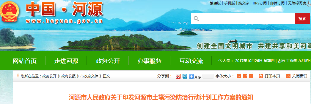 日前,河源市印發(fā)了《河源市行動計劃工作方案》,方案提出到2018年底,全市土壤環(huán)境監(jiān)管體系基本建立,監(jiān)測網絡投入運行,農用地土壤環(huán)境質量狀況進一步查清,建設用地分用途風險管控制度全面實施。到2020年,全市土壤環(huán)境綜合監(jiān)管能力顯著提升,土壤污染加重趨勢得到初步遏制,土壤環(huán)境質量總體保持穩(wěn)定,農用地和...