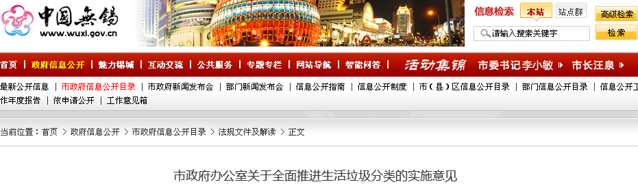 近日,無錫市政府印發(fā)了《全面推進分類的實施意見》,意見提出以生活垃圾“三分類”為標準,在現(xiàn)有生活垃圾收運處置體系的基礎上,加快建設和強制推行“”分類收運處置體系,推進“可回收物”的市場化收運處置,推動“有害垃圾”的分類收運處置模式。到2020年,我市市區(qū)范圍內設施覆蓋率達70%,生活垃圾基本實現(xiàn)全量...
