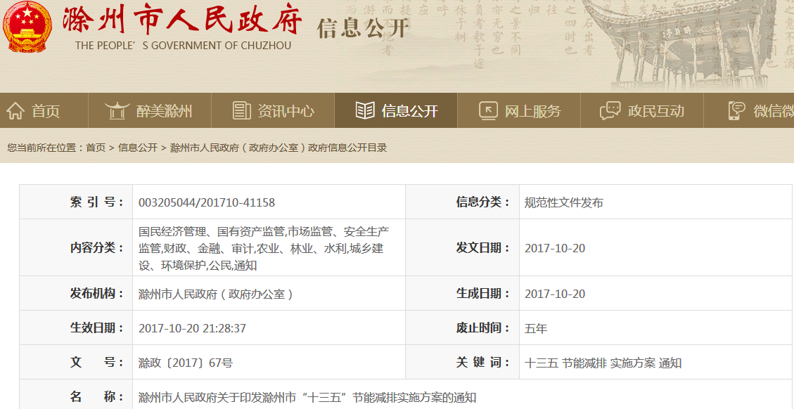 近日,滁州市人民政府印發(fā)了《滁州市“十三五”實(shí)施方案》,方案提到到2020年,全市單位地區(qū)生產(chǎn)總值能耗比2015年下降16%,能源消費(fèi)總量控制在773萬噸標(biāo)準(zhǔn)煤以內(nèi)。全市化學(xué)需氧量、氨氮、二氧化硫、、揮發(fā)性有機(jī)物排放總量分別控制在56000噸、7078噸、18999噸、34904噸、56712噸以內(nèi)...