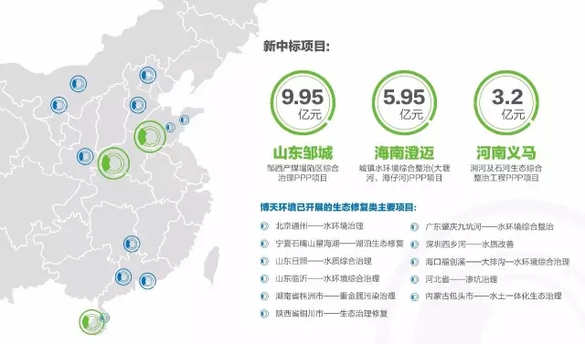 近日,博天環(huán)境集團(tuán)(603603.SH)通過聯(lián)合體合作方式分別贏取了位于山東省鄒城市、河南省義馬市和海南省澄邁縣的三個(gè)生態(tài)修復(fù)類項(xiàng)目。其中山東省鄒城市鄒西產(chǎn)煤塌陷區(qū)綜合治理PPP項(xiàng)目,投資概算約9.95億元;河南省義馬市澗河及石河生態(tài)綜合整治工程(PPP),項(xiàng)目總投資約3.2億元;海南省澄邁縣城鎮(zhèn)水...