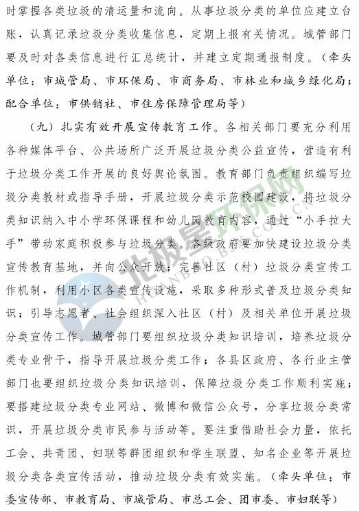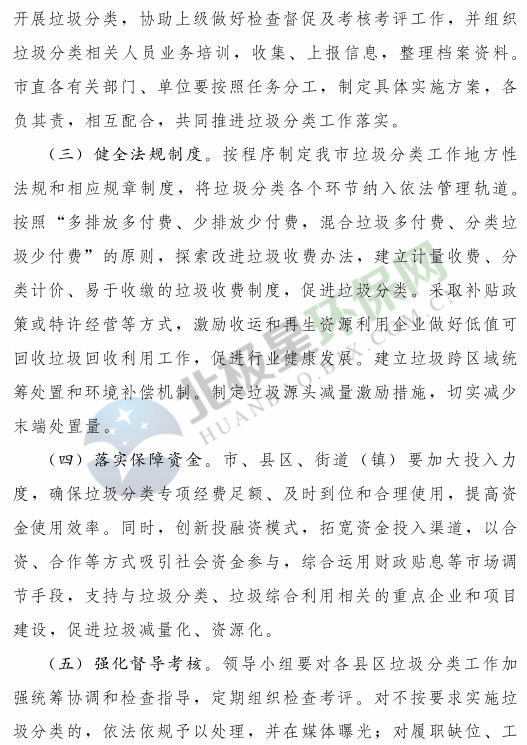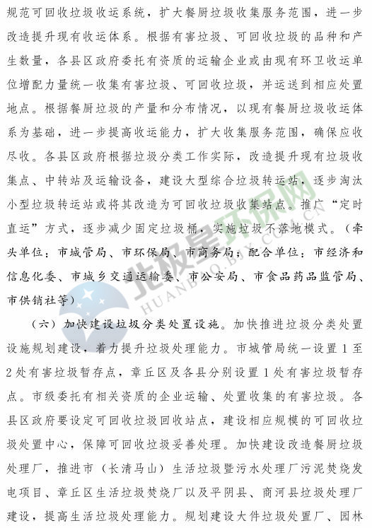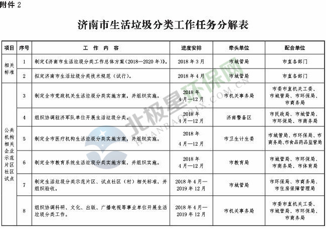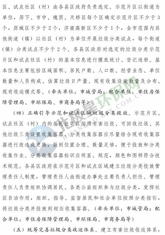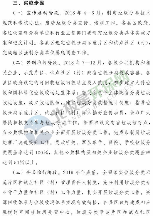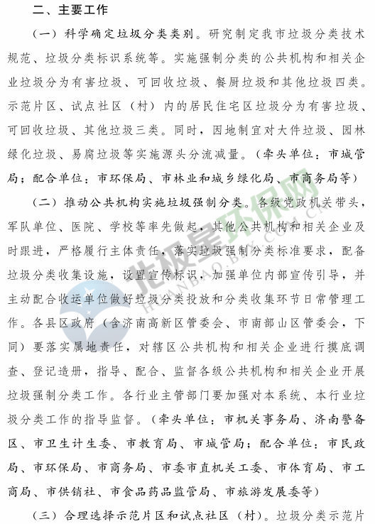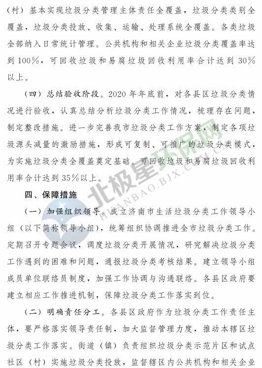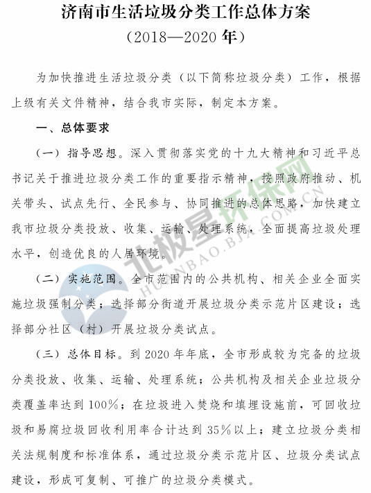 《濟南市生活垃圾分類工作總體方案(2018—2020年)》已經(jīng)印發(fā),《方案》提出,到 2020 年年底,全市形成較為完備的垃圾分類投放、收集、運輸、處理系統(tǒng);公共機構(gòu)及相關(guān)企業(yè)垃圾分類覆蓋率達到 100% ;在垃圾進入焚燒和填埋設(shè)施前,可回收垃圾和易腐垃圾回收利用率合計達到 35% 以上;建立垃圾分類相關(guān)法規(guī)制度和標(biāo)準(zhǔn)體系,通過垃圾分類示范片區(qū)、垃圾分類試點建設(shè),形成可復(fù)制、可推廣的垃圾分類模式。詳情如下: