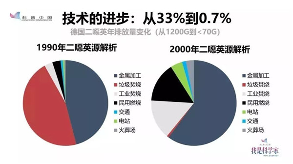 公眾對于污染物質(zhì)的擔憂、抵抗和集會游行,從某種意義上來說,推動了更嚴格的環(huán)境法律的推出以及環(huán)境標準的提高,以及技術(shù)的進步和工藝的改進。1990年到2000年間德國二噁英的源解析給我們提供了證據(jù):在1990年,全德國一年產(chǎn)生大概1200克的二噁英,其中來自垃圾焚燒的大概占33%。隨著技術(shù)的進步和標準的提高,到2000年整個德國二噁英的排放量下降到低于70克,其中來自于垃圾焚燒裝置的排放只占了大概0.7%,這是一個非常低的比例。