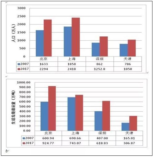 國內(nèi)的數(shù)據(jù)本該可比,實際可比性很差。比如深圳的生活垃圾清運量是天津的兩倍,而統(tǒng)計的人口深圳只比天津多20%,深圳的實際居住人口恐怕明顯被低估。上海的生活垃圾清運量在2013年以前一直比北京高,2013年以后無緣無故地降下來了,是什么因素,是否有人為因素?天津的人均生活垃圾清運量少,并不是真的產(chǎn)生少,而是收集范圍沒有全覆蓋或者沒有統(tǒng)計;上海的人均生活垃圾清運量少,并不是真的產(chǎn)生量少;北京市人均生活垃圾高達1.1千克/人·日,明顯高于天津、上海,這里還不包括廢品,是居住人口沒有充分統(tǒng)計,還是生活垃圾量重復統(tǒng)計,比如綜合處理廠的生活垃圾最終在填埋場或焚燒廠還要統(tǒng)計一次?