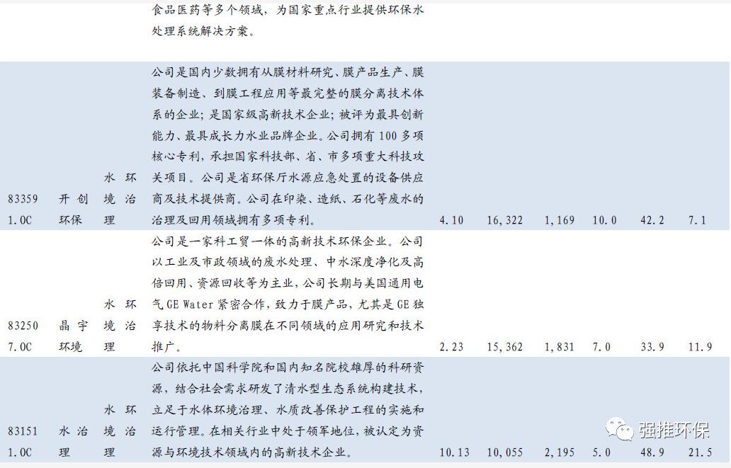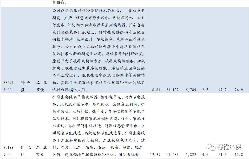 根據(jù)上述條件,我們篩選出21家具有科創(chuàng)板基因的新三板環(huán)保公司,包括: