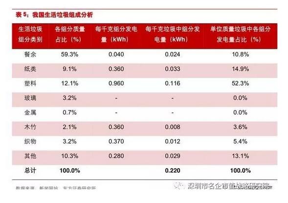 1) 垃圾分類(lèi)將提高垃圾熱值;我國(guó)生活垃圾平均熱值較發(fā)達(dá)國(guó)家低,主要原因是廚余垃圾占比較 高。分析單位質(zhì)量垃圾的發(fā)電量,熱值較高的塑料,其貢獻(xiàn)度達(dá)到 52.3%,其次為紙類(lèi)、織 物等,而餐廚垃圾的貢獻(xiàn)度僅為 10.8%。我國(guó)有部分城市已經(jīng)開(kāi)始了垃圾分類(lèi)的試點(diǎn),實(shí)行 干濕分離,生活垃圾中餐廚垃圾占比下降,垃圾熱值有望提升。