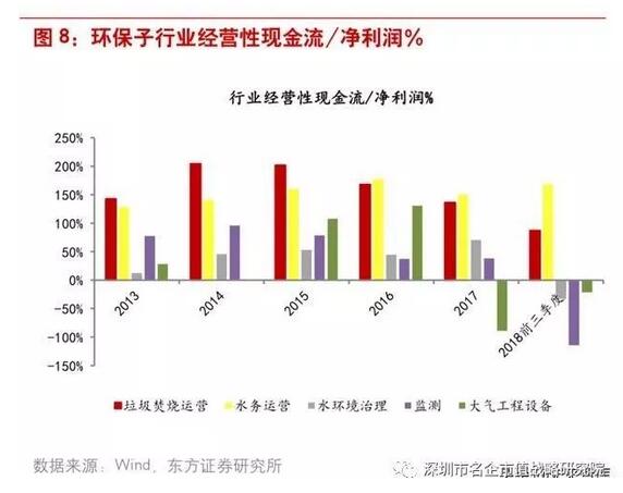 垃圾焚燒屬于資本較密集型,板塊的整體負(fù)債率維持在 55-60%的水平,與項(xiàng)目的杠桿率基本匹配; 垃圾處理收入和發(fā)電收入結(jié)算周期較短,經(jīng)營(yíng)性現(xiàn)金流凈額和凈利潤(rùn)的匹配度較高。2013-2018 年前三季度,垃圾焚燒板塊經(jīng)營(yíng)性現(xiàn)金流/凈利潤(rùn)%維持在 80-210%左右的水平,與水務(wù)運(yùn)營(yíng)板塊 相當(dāng),大幅好于水環(huán)境治理、監(jiān)測(cè)、大氣工程等環(huán)保子行業(yè)。