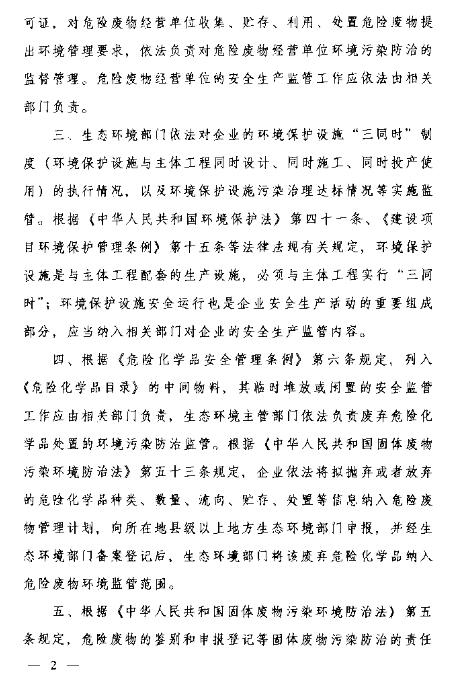 4、生態(tài)環(huán)境主管部門依法負(fù)責(zé)廢棄危險(xiǎn)化學(xué)品處置的環(huán)境污染防治監(jiān)管。