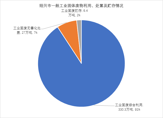 一、工業(yè)固體廢物:2017年,紹興市全市一般工業(yè)固體廢物產(chǎn)生量359.2萬(wàn)噸。利用、貯存和處置情況具體見下圖。