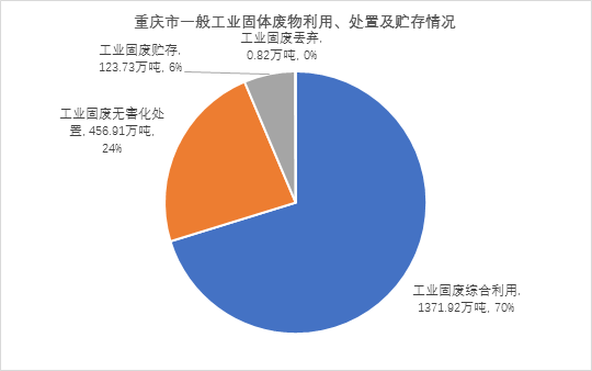 一、工業(yè)固體廢物:根據(jù)《重慶市固體廢物污染防治信息》,2017年,重慶市產(chǎn)生一般工業(yè)固體廢物1943.20萬(wàn)噸。利用、貯存和處置情況具體見下圖。