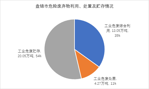 二、危險(xiǎn)廢棄物:2017年全市工業(yè)危險(xiǎn)廢棄物產(chǎn)生量18.16萬(wàn)噸,遺留量19.21萬(wàn)噸。盤錦市危廢貯存超50%。