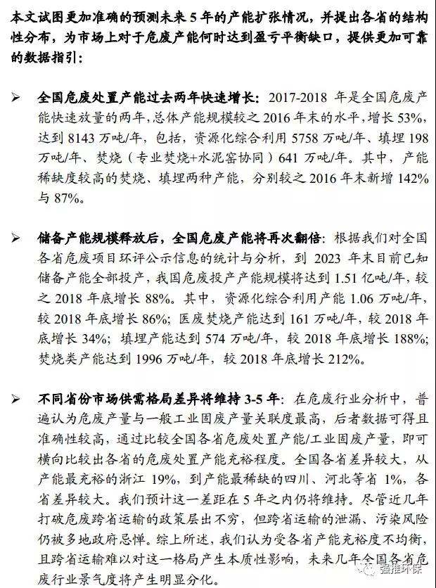 產能維持高速增長、重申危廢行業(yè)“供需兩旺五年”邏輯