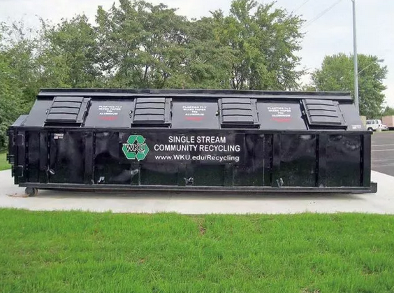 美國西肯塔基大學(xué)校園里的單流回收垃圾桶,從標(biāo)志上看主要混合放紙張和錫、鋁等金屬。