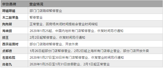 表1餐飲品牌疫情期間營(yíng)業(yè)情況統(tǒng)計(jì)