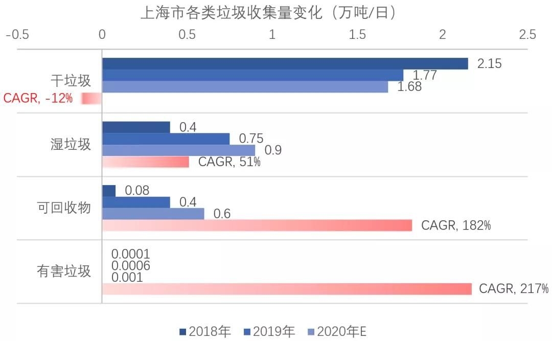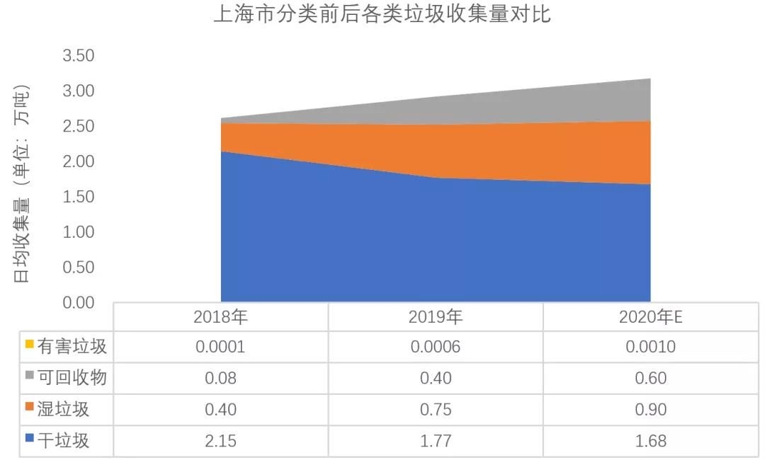 2020年垃圾分類重點目標為實現(xiàn)95%以上的居村及單位垃圾分類實效達標、85%以上的街鎮(zhèn)分類實效示范;確保可回收物回收量6000噸/日以上,有害垃圾清運量達到1噸/日以上,濕垃圾分出量達到9000噸/日左右,干垃圾處置量控制在16800噸/日以下。