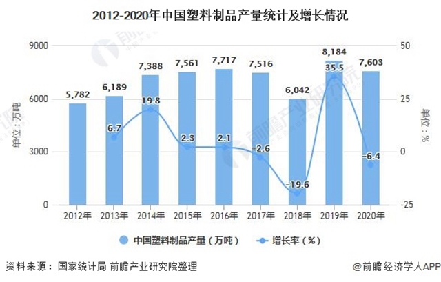 2019年我國塑料制品產(chǎn)量為8184萬噸,塑料燃燒會產(chǎn)生有毒氣體,進(jìn)行填埋又難以分解,從而導(dǎo)致污染土壤環(huán)境。因此,再生塑料產(chǎn)業(yè)的出現(xiàn)不僅解決了環(huán)境污染問題,也節(jié)約了能源的消耗,具有良好的發(fā)展前景。