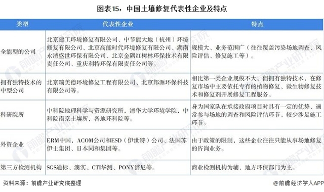 目前國內(nèi)從事土壤修復的企業(yè)越來越多,用“雨后春筍”來形容毫不為過。由于預期土壤修復市場規(guī)模巨大,各行各業(yè)都開始往這方面發(fā)展。從產(chǎn)業(yè)鏈角度看,我國土壤修復行業(yè)既有綜合性企業(yè),也有專注于修復咨詢、技術支撐、調(diào)查評估、修復工程、第三方檢測,甚至學術研究、地質(zhì)礦山、土壤肥料、土方工程、植物營養(yǎng)等某一方面的企業(yè)和機構。