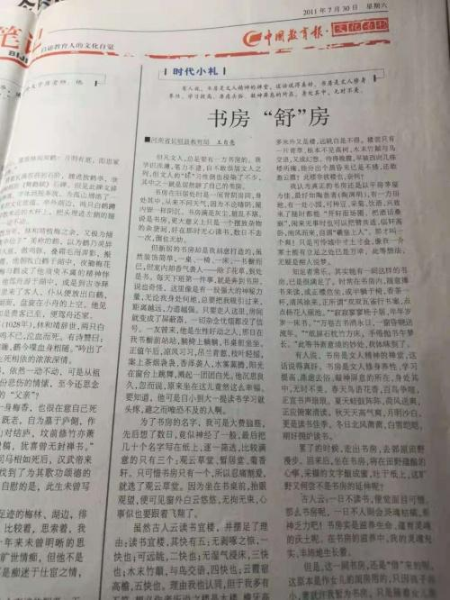 1997年,在校園文學(xué)刊《蒲園》發(fā)表文章,2008年,在《新鄉(xiāng)日報》發(fā)表文章,2011年來,接連在《中國教育報》《中國教師報》《工人日報》《中國紀(jì)檢監(jiān)察報》《文匯報》《科學(xué)時報》《中國建材報》《思維與智慧》《讀者》《青年文摘》《牧野文學(xué)》等發(fā)表作品,2012年,《山寺之夜》在《人民日報》大地副刊發(fā)表,問鼎國家第一大報的文學(xué)圣殿……作品接連在各大報刊發(fā)表,他的創(chuàng)作達到了一個小高潮。贏得了一點小小的聲名,各種贊譽也隨之而來。但只有他自己,明白那其中的苦辛:每日早起晚睡,眼熬紅了,發(fā)變稀了,不敢笑,一笑,眼角就是深深的皺紋。頗類于韓愈的“口不絕吟于六藝之文,手不停披于百家之編。”“焚膏油以繼晷,恒兀兀以窮年。”當(dāng)十多年不見的同學(xué)見到他的照片,驚嘆:天啊,到底經(jīng)歷了什么?把以往的小鮮肉摧殘成這般模樣。對此,他淡然一笑,有痛,更多的是充實和欣慰。他堅信,他的付出是值得的。