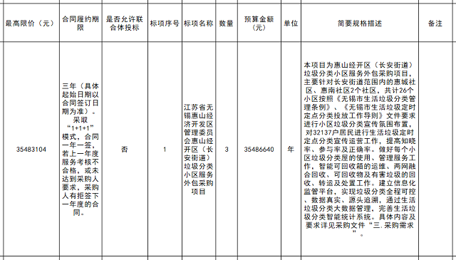 項(xiàng)目名稱: 惠山經(jīng)開區(qū)(長安街道)垃圾分類小區(qū)服務(wù)外包采購項(xiàng)目