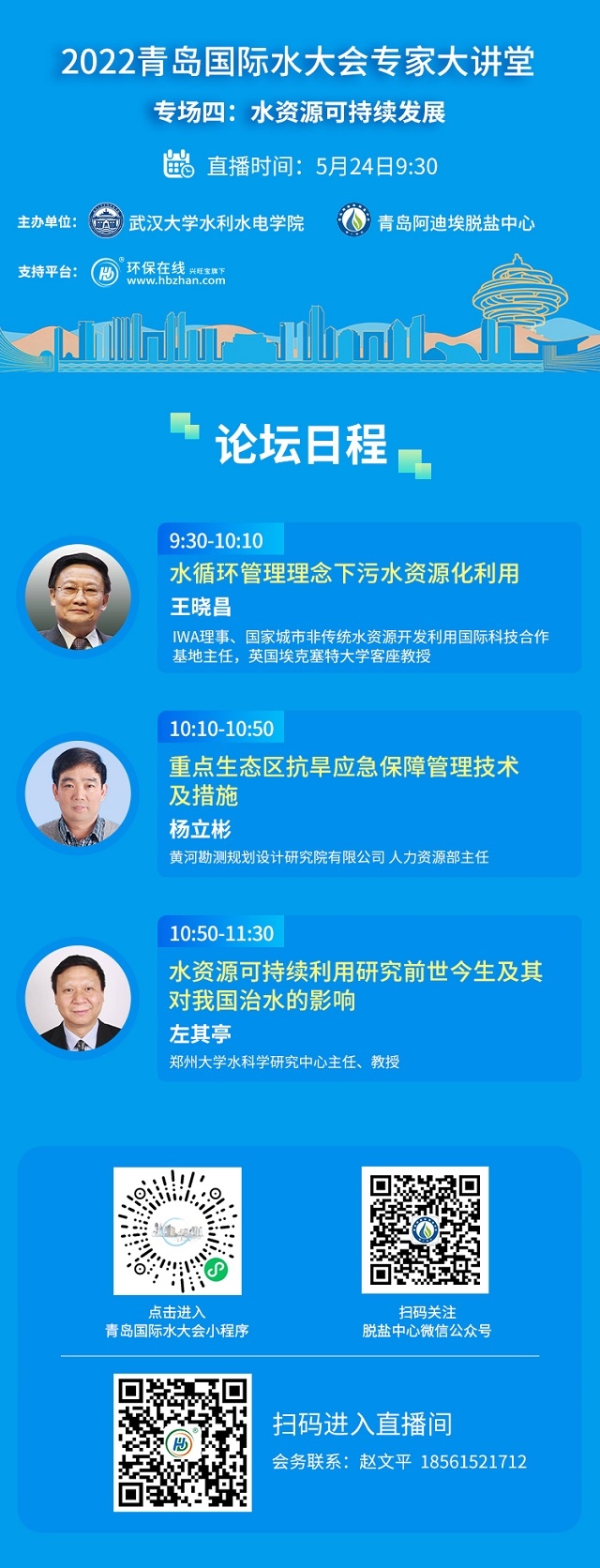 跟上【海水淡化與濃鹽水綜合利用論壇】【工業(yè)節(jié)水與污水資源化論壇】【城鎮(zhèn)水務(wù)發(fā)展與技術(shù)論壇】的節(jié)奏,2022年5月24日上午9:30,由武漢大學(xué)水利水電學(xué)院、青島青島阿迪埃脫鹽中心聯(lián)合舉辦的【水資源可持續(xù)發(fā)展論壇】將準(zhǔn)點(diǎn)登陸環(huán)保在線!環(huán)保“學(xué)院派”的觀點(diǎn)交鋒,記得來一探究竟~