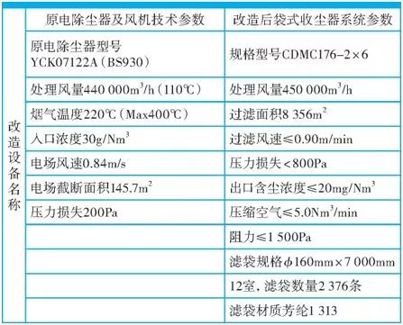 原窯頭電除塵系統(tǒng)參數(shù)及改造為袋收塵系統(tǒng)參數(shù)對比(見表1)。改造后排放指標(見表2)。