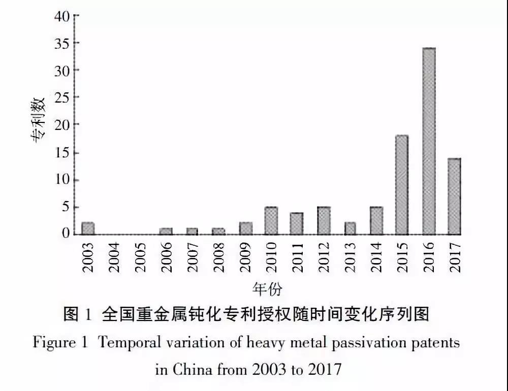 采用文獻(xiàn)計(jì)量學(xué)方法全面系統(tǒng)地回顧和總結(jié)已有技術(shù)成果的現(xiàn)狀、特點(diǎn)和趨勢,可以為更深入開展重金屬鈍化技術(shù)的研究工作提供參考和依據(jù)。本文以可檢索到的重金屬鈍化技術(shù)發(fā)明專利文獻(xiàn)為樣本,對專利的時(shí)空分布、研究機(jī)構(gòu)、研究方法和應(yīng)用領(lǐng)域,以及鈍化劑的特點(diǎn)、適用范圍和應(yīng)用效果等進(jìn)行文獻(xiàn)計(jì)量分析和總結(jié),研究成果為重金屬鈍化技術(shù)的選擇與應(yīng)用提供了參考。
