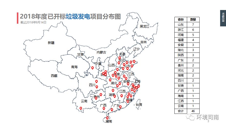 在全國開標(biāo)的46個垃圾發(fā)電中,21個位于華東地區(qū),占項(xiàng)目總量的45%。