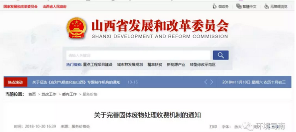根據(jù)國家發(fā)改委《關(guān)于創(chuàng)新和完善促進綠色發(fā)展價格機制的意見(發(fā)改價格規(guī)〔2018〕943號)》精神,全面建立覆蓋成本并合理盈利的固體廢物處理機制,加快建立有利于促進垃圾分類和減量化、資源化、無害化處理的綠色機制,近日,山西省改委、財政廳、住建廳、生態(tài)環(huán)境廳、衛(wèi)健委、農(nóng)業(yè)廳等五廳委聯(lián)合下發(fā)《關(guān)于完善固體廢物處理收費機制的通知》。