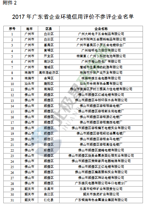2.2017年廣東省企業(yè)環(huán)境信用評價不參評企業(yè)名單